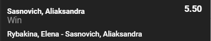 Aliaksandra Sasnovich Win - Stake 1 Unit, Minimum Odds 4.6, Best Book - UNIBET