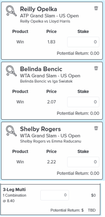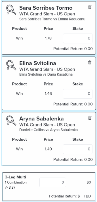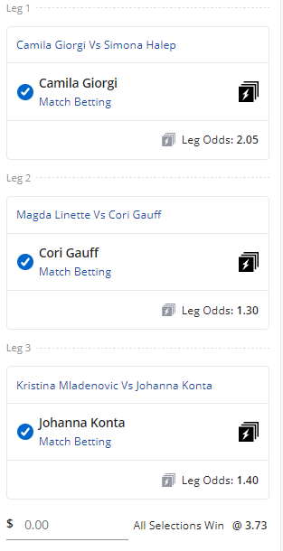 Womens Tennis Multi - Stake 2 Units, Minimum Odds 3.5, Best Book - Topsport