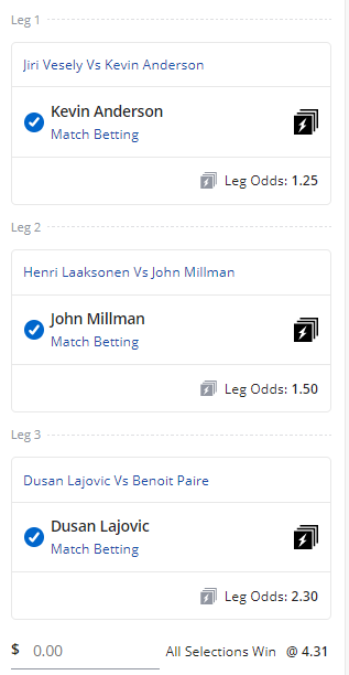 Kevin Anderson Win - Stake 1.5 Units, Minimum Odds 2.8, Best Book - UNIBET