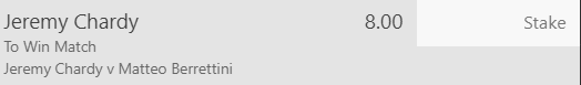Jeremy Chardy Win - Stake 1 Unit, Minimum Odds 7.0, Best Book - BET365