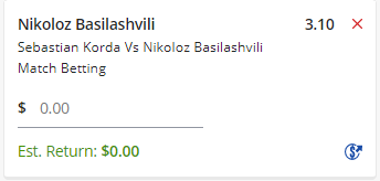Nikoloz Basilashvili Win - Stake 2 Units, MInimum Odds 2.8, Best Book - Lads/Neds