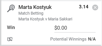 Marta Kostyuk Win - Stake 1.5 Units, Minimum Odds 2.8, Best Book - Sportsbet