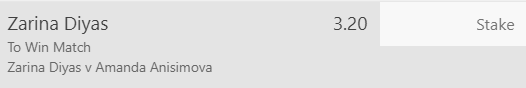 Zarina Diyas Win - Stake 1.5 Units, Minimum Odds 2.9, Best Book - BET365