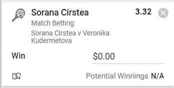 Sorana Cirstea Win - Stake 1.5 Units, Minimum Odds 3.0, Best Book - Sportsbet