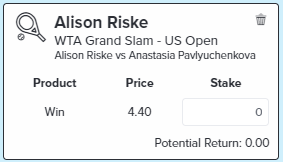 Alison Riske Win - Stake 1 Unit, Minimum Odds 4.0, Best Book -Topsport