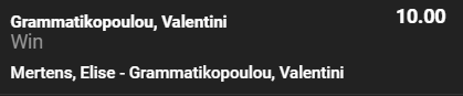 Valentini Grammatikopoulou Win - Stake 0.5 Units, Minimum Odds 8.0, Best Book - UNIBET
