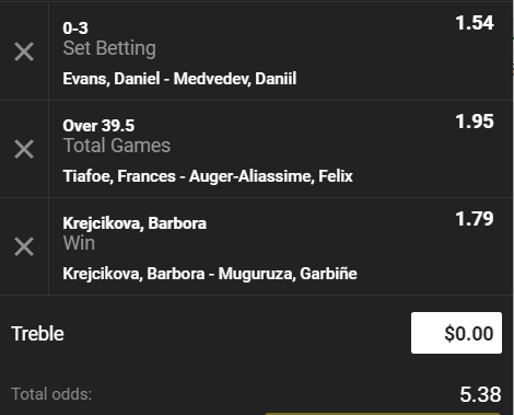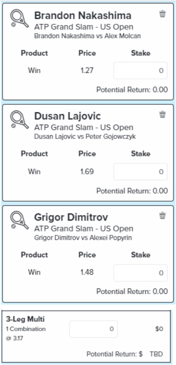 Mens Tennis Multi - Stake 2 Units, Minimum Odds 2.95, Best Book - Topsport