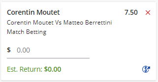 Corentin Moutet Win - Stake 0.5 Units, Minimum Odds 6.8, Best Book - Lads/Neds