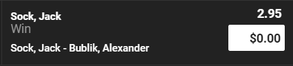 Jack Sock Win - Stake 1.5 Units, Minimum Odds 2.7, Best Book - UNIBET