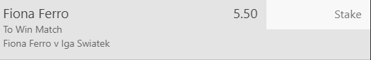 Fiona Ferro Win - Stake 1 Unit, Minimum Odds 4.8, Best Book - BET365