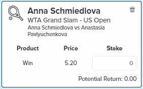 Anna Schmiedlova Win - Stake 1 Unit, Minimum Odds 4.4, Best Book - Topsport