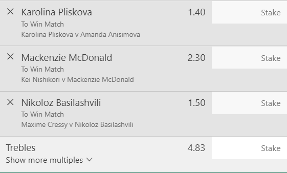 Womens Tennis Multi - Stake 1.5 Units, Minimum Odds 3.3, Best Book - Lads/Neds