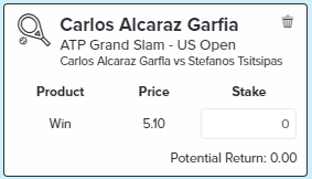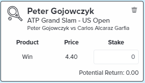 Carlos Alcaraz Win - Stake 1 Unit, Minimum Odds 4.5, Best Book - Topsport