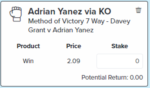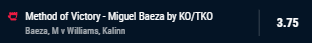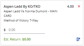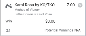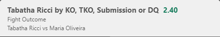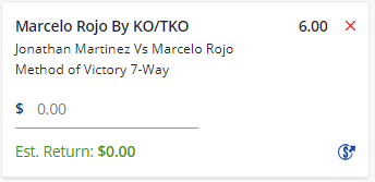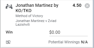 Mana Martinez by KO/TKO - Stake 2 Units, Minimum Odds 1.8, Best Book - Lads/Neds