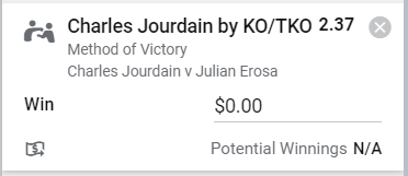 Julian Erosa Double Chance, KO/TKO or Sub - Stake 1.5 Units, Minimum Odds Topsport
