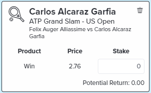 Carlos Alcaraz Win - Stake 1.5 Units, Minimum Odds 2.5, Best Book - Topsport