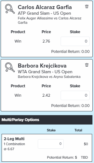Barbora Krejcikova Win - Stake 1.5 Units, Minimum Odds 2.25, Best Book - Sportsbet