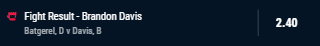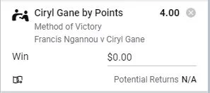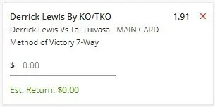 Derrick Lewis by KO/TKO - Stake 2.5 Units, Minimum Odds 1.77, Best Book - Lads/Neds