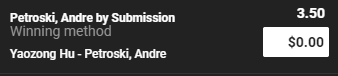 Andre Petroski by Submission - Stake 2 Units, Minimum Odds 2.0, Best Book - Lads/Neds
