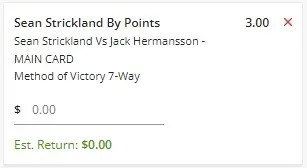 Sean Strickland by Decision - Stake 2 Units, Minimum Odds 2.6, Best Book - Lads/Neds