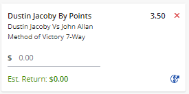 Dustin Jacoby by KO/TKO - Stake 1.5 Units, Minimum Odds 3.2, Best Book - Pointsbet
