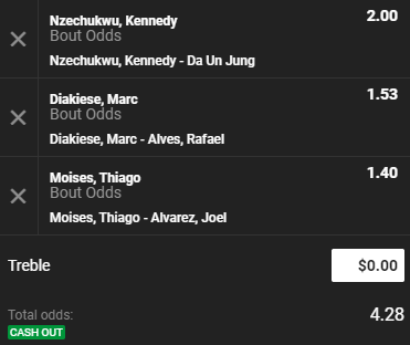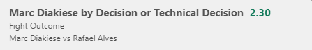This is a value play at odds that are out of line. Almeida is rightfully the favourite in this match, but a UFC debutant should never see a line this wide. Almeida has shown excellent grappling throughout his career, but he faces Marques who is likely the best grappler he has come across. Marques has gone 2-1 so far in the UFC, losing his only match in his last fight against Nzechekwu after completely controlling him for the first 2 rounds. We get to take a shot on Marques here with the odds showing him disrespect.