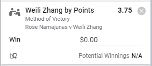 Antoine Hoang Win - Stake 1 Unit, Minimum Odds 3.6, Best Book - Sportsbet