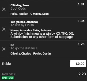 Jacob Malkoun is Whittaker’s training partner and similar to Blood Diamond is only here because the UFC is doing Whittaker a favour. AJ Dobson looks to be the goods from what we have seen on the Contender and very well could get the job done in an emphatic fashion however this fight looks to be a little too close for us to pick a side. What we do like here is for the fight not to go the distance as both fighters have high finishing potential.
