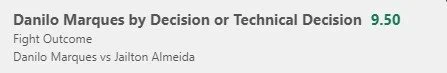 Danilo Marques to Win by Decision - Stake 0.5 Units, Minimum Odds 8, Best Book - BET365