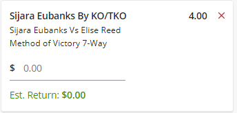 Sijara Eubanks by KO/TKO - Stake 1 Unit, Minimum Odds 3.3, Best Book - Lads/Neds