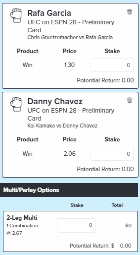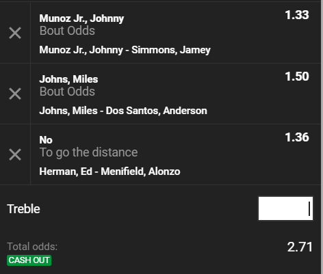 Early UFC Multi - Stake 2 Units, Minimum Odds 2.2, Best Book - UNIBET