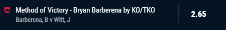 Bryan Barberena to Win by KO/TKO - Stake 2 Units, Minimum Odds 2.2, Best Book - Pointsbet