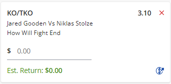 Gooden/Stolze Fight to end in KO/TKO - Stake 2 Units, Minimum Odds 2.4, Best Book - Lads/Neds