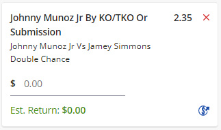 Johnny Nunoz JR Double Chance, Sub/KO,TKO - Stake 2 Units, Minimum Odds 2.1, Best Book - Lads/Neds