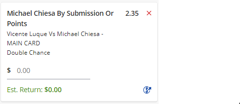 This bet is perfectly fine as just the KO/TKO at the same odds. Most books have the KO/TKO only for $4.50, but if were getting an extra method of victory we may as well take it. The chance of Lewis winning by Sub is very very low, but it doesn’t hurt if its thrown in as a freebie.