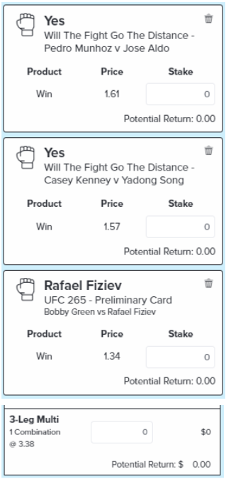 UFC Late Fight Multi - Stake 2 Units, Minimum Odds 3.0, Best Book - Topsport