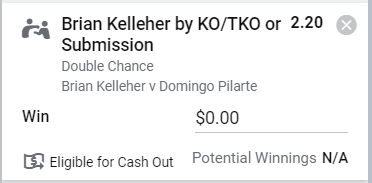 Brian Kelleher Double Chance, KO/TKO, Sub - Stake 2 Units, Minimum Odds 2.05, Best Book - Sportsbet